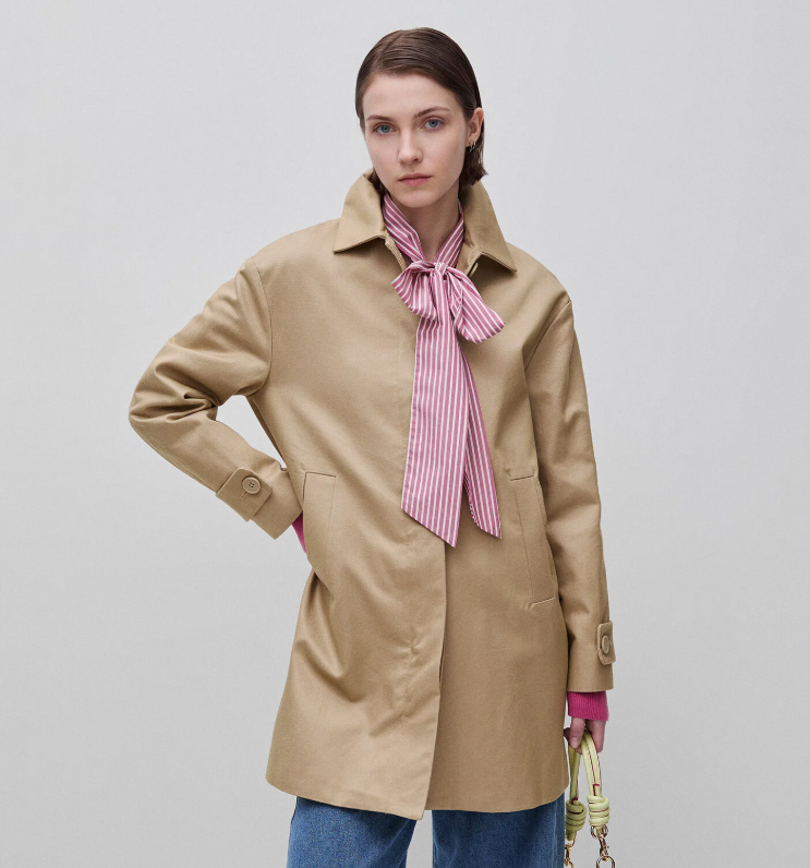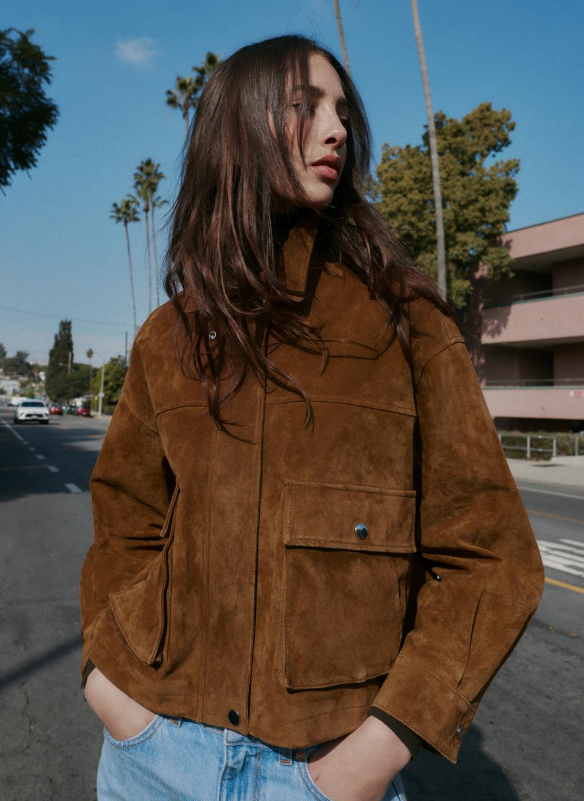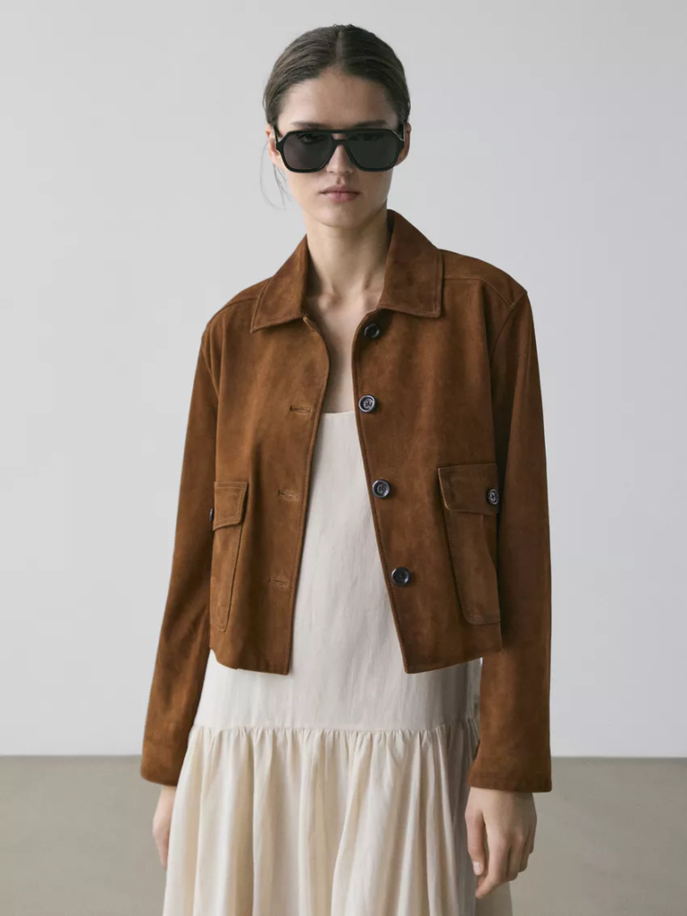 Brez jaken spomladi seveda ne gre, postanejo pa lahkotnejše in tanjše od zimskih. Prosim, pospravite črne puhovke v najbolj oddaljen kot omare 😉 in potegnite na plano prehodne plaščke, trenčkote, usnjene jakne, tanjše volnene suknjiče in podobno. Trgovine nas letos mamijo še posebej s semiš jaknami (lahko gre za pravo ali pa umetno usnje) in to v odtenkih rjave, ki se res lepo kombinirajo z marsičem. Tudi tiste ženske, ki jih usnje ni preveč blizu kot tekstura, se lažje navdušijo nad semiš usnjem, saj je mehkejše in bolj zamolklo zaradi mat teksture. Poleg semiš jaken lahko izpostavim še en močan trend, to so bomber jakne: dolžine nekje do vrha bokov se končujejo s patentom, imajo običajno zadrgo (ali pritiskače) in lahko tudi žepe spredaj. Njihov napol športni karakter lahko naredi zanimiv kontrast s kakšno bolj romantično bluzo ali krilom s čipko, prav tako pa zelo lepo pristajajo tudi na kavbojke in širše hlače iz blaga.