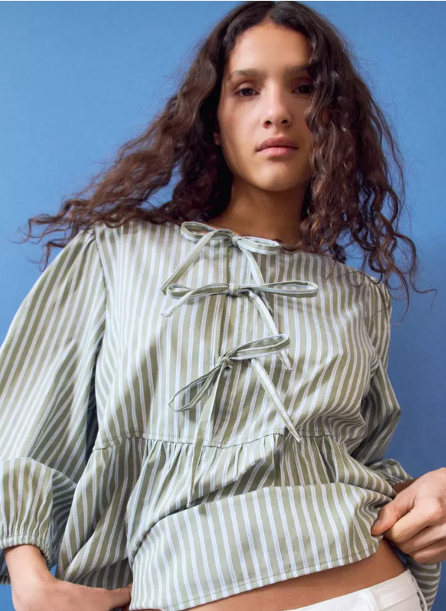 Črtaste srajce (lahko tudi bluze) še nikoli niso bile tako zelo “in”. Najprej seveda pomislimo na klasiko nebeško modre in bele, obstajajo pa tudi številne druge barvne različice. Klasičen službeni kos, bi lahko rekli, a pozor: srajce v različici 2026 se nosijo malce drugačne – imajo denimo pentljo pod vratom, široke rokave, asimetrično zapenjanje, trakce ob strani ali kakšen drug zanimiv detajl. Lahko pa vzamemo kar čisto navadno “moško” oversize črtasto srajco in jo same stiliramo malce drugače, npr. zavežemo v pasu, močno zavihamo rokave, jo nalašč zapnemo malce postrani in tako dalje. Šteje domišljija ;).