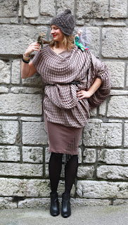 teksturirane asimetrične obleke JSP, ki sem jo prepasala s svojim pasom in