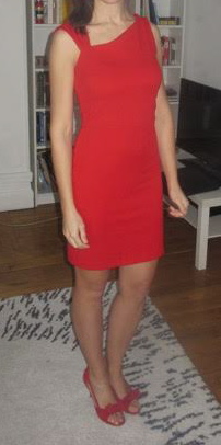 (fotka v rdeči obleki, ki mi jo je poslala Anja s prošnjo za predloge kombinacij; foto: arhiv stranke)