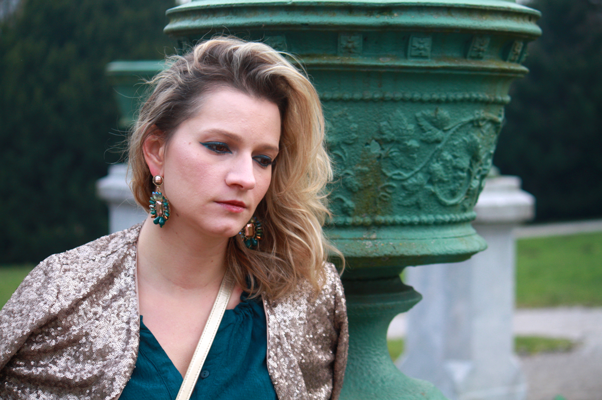 Ali pa bi si želela nekaj bolj klasičnega, vendar vseeno ne ravno oblekice ali male črne. Potem bi izbrala kombinezon (pred kakšnim letom bi prisegla, da ne obstaja kombinezon zame, v katerem nisem videti kot Telebajsek, a sem se motila!) in obvezne bleščice. Pa ker je sicer med letom moja uniforma rdeča šminka, bi si tokrat res močno in res barvito naličila oči. Zato, da bi si dala duška, saj na Silvestrovo se to menda sme.