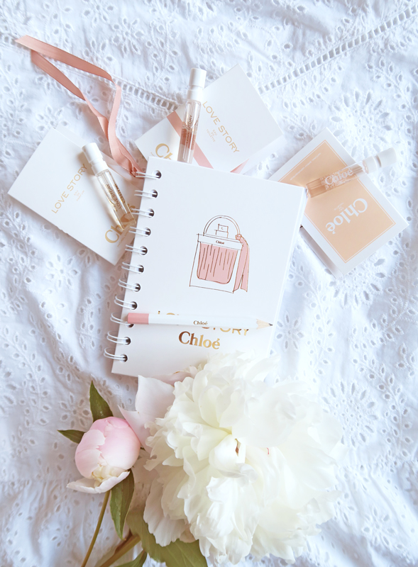 blokec Chloe s svinčnikom, poleg tega pa še 3 testerčke Chloe parfumov, ki so s
