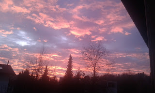 ožarja oblake in jih obarva žareče rožnato.
