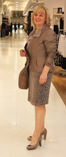 Najprej sem ji razložila nekaj osnov oblačenja za njeno postavo, pri čemer sem poudarila pravilno izbiro modrčka, s katerim se prsi postavijo na pravo mesto, ob čemer se razkrije linija pasu. Barve njene polti, las in oči kar kličejo po topli, a nevtralni paleti peščenih, kavnih, šampanjskih in zlatih odtenkov, ki z njenimi barvami tvorijo lepo harmonijo. Prva dva outfita sta tako v že omenjenih nevtralnih tonih, ki so kot osnovne barve, na katerih bi lahko gradila svojo garderobo, za Tanjo mnogo primernejše od črnine, saj jo ta naredi brezbarvno in nezdravo.