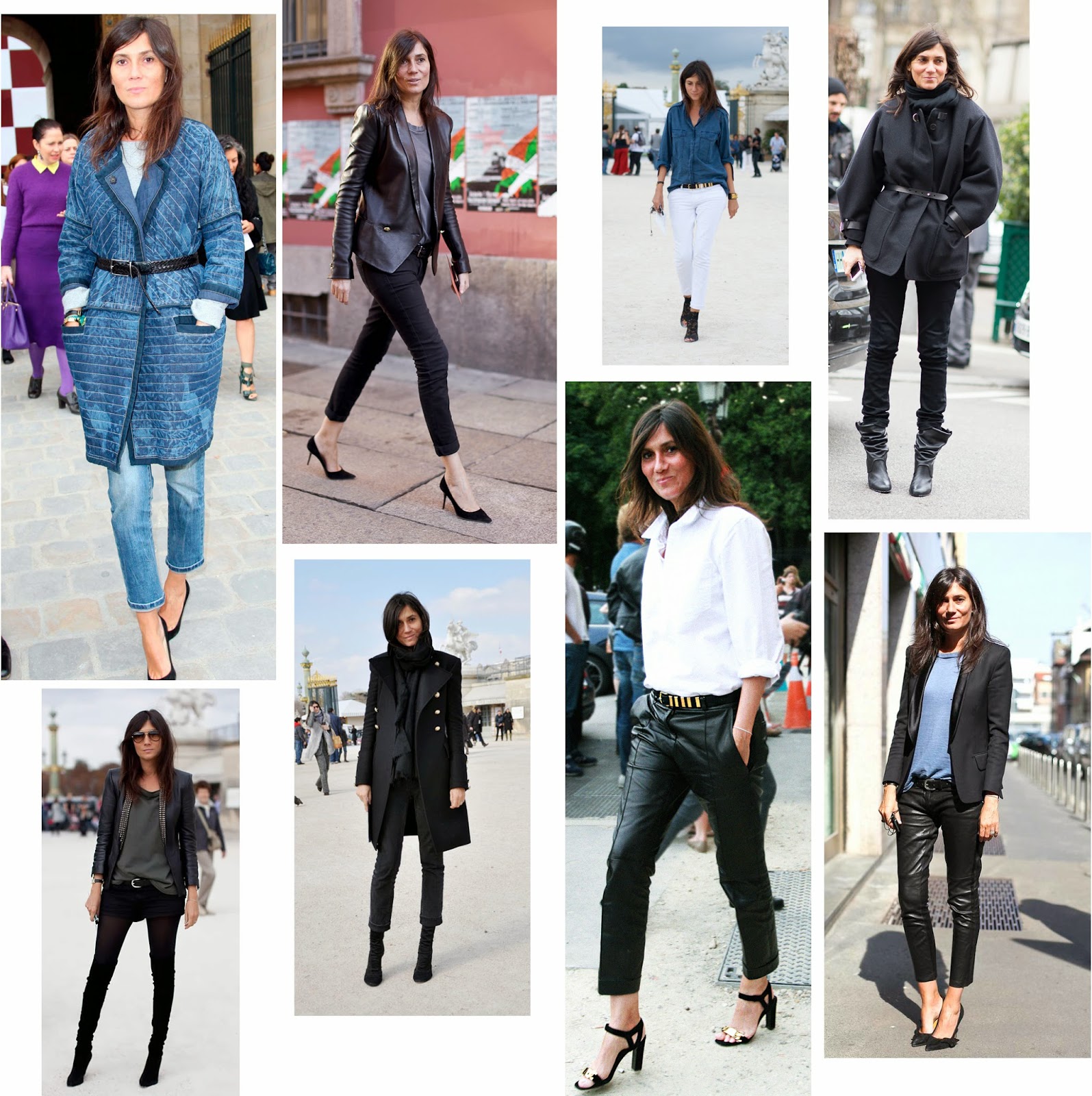minimalizma. Njuna paleta večinoma zajema črno, sivo in belo, kroji pa so ostro izčiščeni in enostavni. Pogosto si navidez sposojata v ‘njegovi’ omari, končni učinek pa je (seveda zelo premišljena) ‘tole sem v zadnji minuti vrgla nase’ nonšalanca. Njun slog je moden, a prizemljen, izogibata se kompliciranim kombinacijam, vidnim logotipom in izrazito ženstvenim kosom. Najbolj ženstvena stvar na njiju so običajno salonarji z visoko peto ali rdeča šminka. Ena od njiju je urednica francoskega Vogue-a Emmanuelle Alt, katere slog bi lahko povzeli z receptom: ozke kavbojke + moški suknjič + visoke pete.