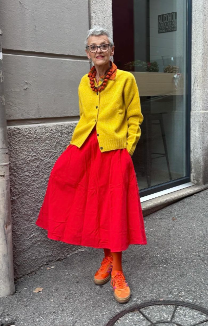 Še bolj fascinantno je zame to, da veliko ljudi prizna, kako so jim barve všeč in kako barvito oblačenje občudujejo na drugih: morda na znancih in mimoidočih, morda pri kakšnem tujem narodu na potovanju. Kdo nima izkušnje izleta v Italijo, kjer lahko prevozimo le nekaj kilometrov zahodno od slovenske meje, pa se vse spremeni? Ljudje vseh let nosijo barve, vzorce, teksture in dodatke, ki pritegnejo pogled in nas dobesedno razvedrijo. Manjkajoči korak ni sprememba izven nas, ampak klik v glavi: “Tudi jaz lahko in bom!”